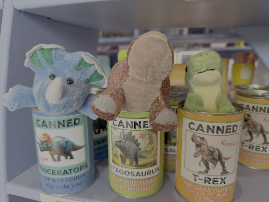 - Ruthie Jane’s | Dinosaur warmie, dino toys, dino ornament, bracelets, cards and coasters