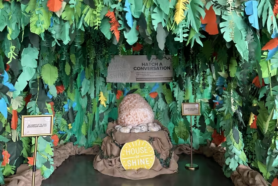House of Shine is excited to offer three hands-on, heart-filled interactive experiences as part of our exhibit, designed to spark curiosity, ignite imagination, and help every visitor shine a little brighter. Visitors can plant a dream in our Canopy of Dreams, where writing down your hopes and goals adds to our growing International Dream Garden. Uncover hidden messages in Prehistoric Prints, using crayons and fossil-like textures to reveal what lies beneath—just like real paleontologists. Crack open meaningful conversations in Hatch a Conversation, where questions tucked inside dinosaur eggs invite guests to share stories and connect.
